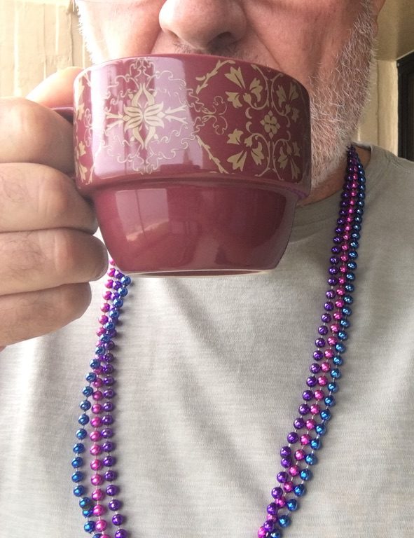 - (optional, but recommended) For a more authentic Cafe du Monde experience, enjoy your coffee while wearing Mardi Gras beads.